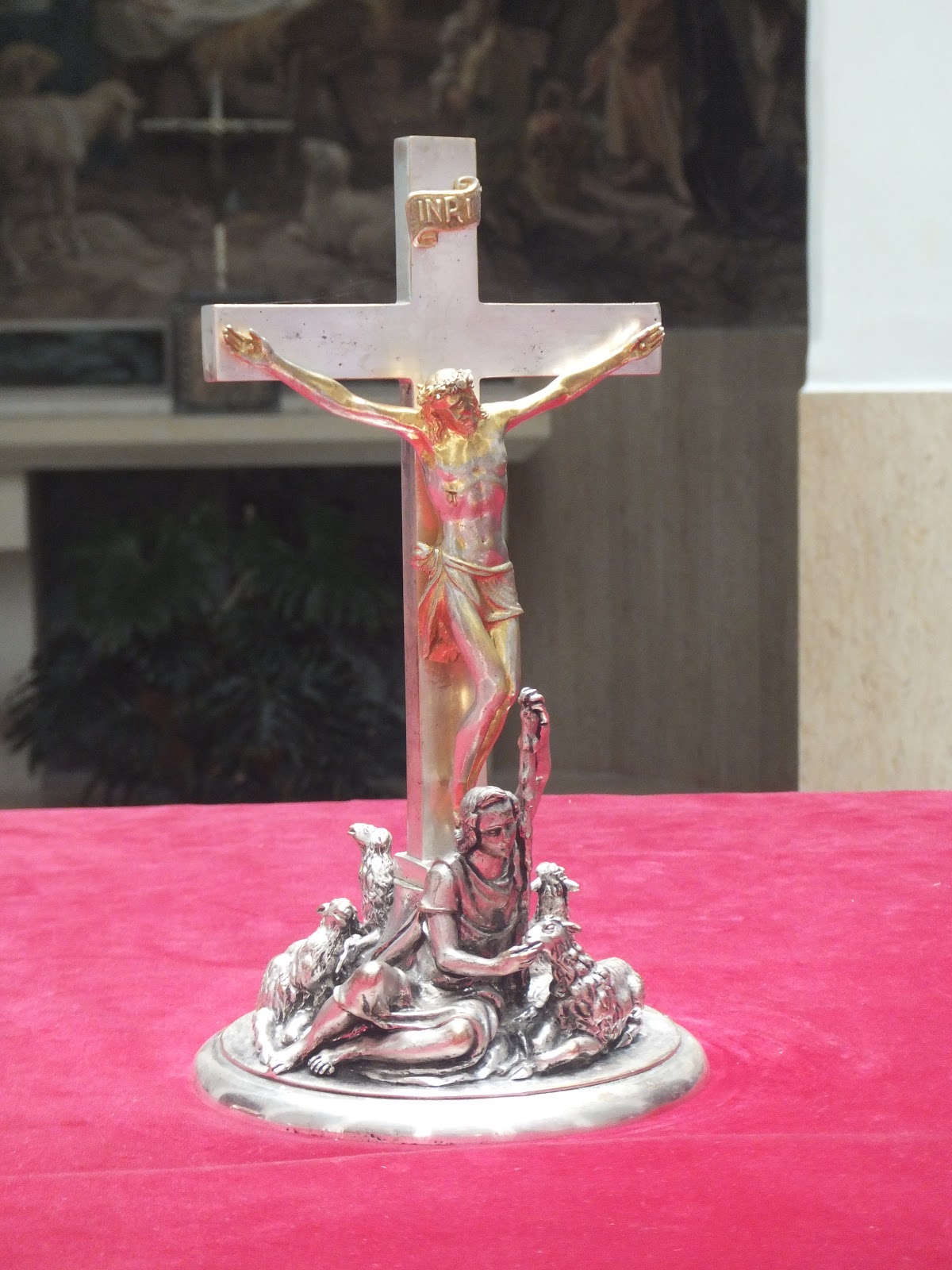 The Sanctuary, designed by Barluzzi, stands on a rock overlooking the ruins. It has a dodecagonal shape with five apses having an inclined plane, recalling the structure of a field tent like the one used by the shepherds at that time. The light that penetrates the concrete and glass dome, illuminating the interior calls to mind the divine light that appeared to the shepherds. (source: CustodiaTerrae Santae)